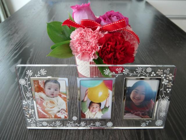 フレームは孫3人の写真をおさめたわたしの母へのプレゼント。
