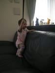 リビングにかかっているパパのベルトをソファに上って引っ張るのが最近のブーム☆