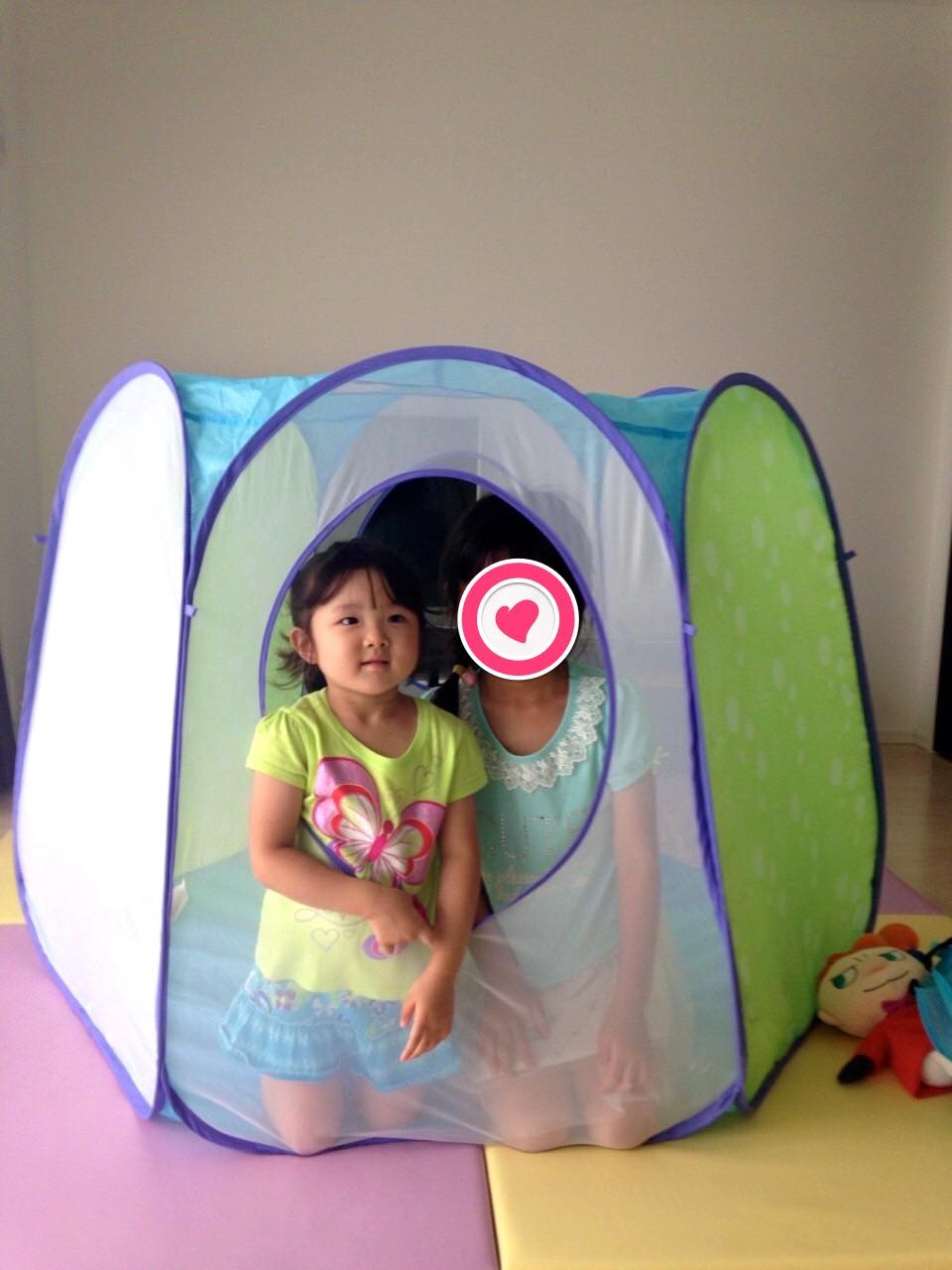 ママの小学校のときの同級生が小学生の女の子を連れて遊びに来てくれました。お姉ちゃんが大好きなこのちゃんは一緒に遊べてとても楽しそうでした。意外に積極的にお姉ちゃんを追い回していました。