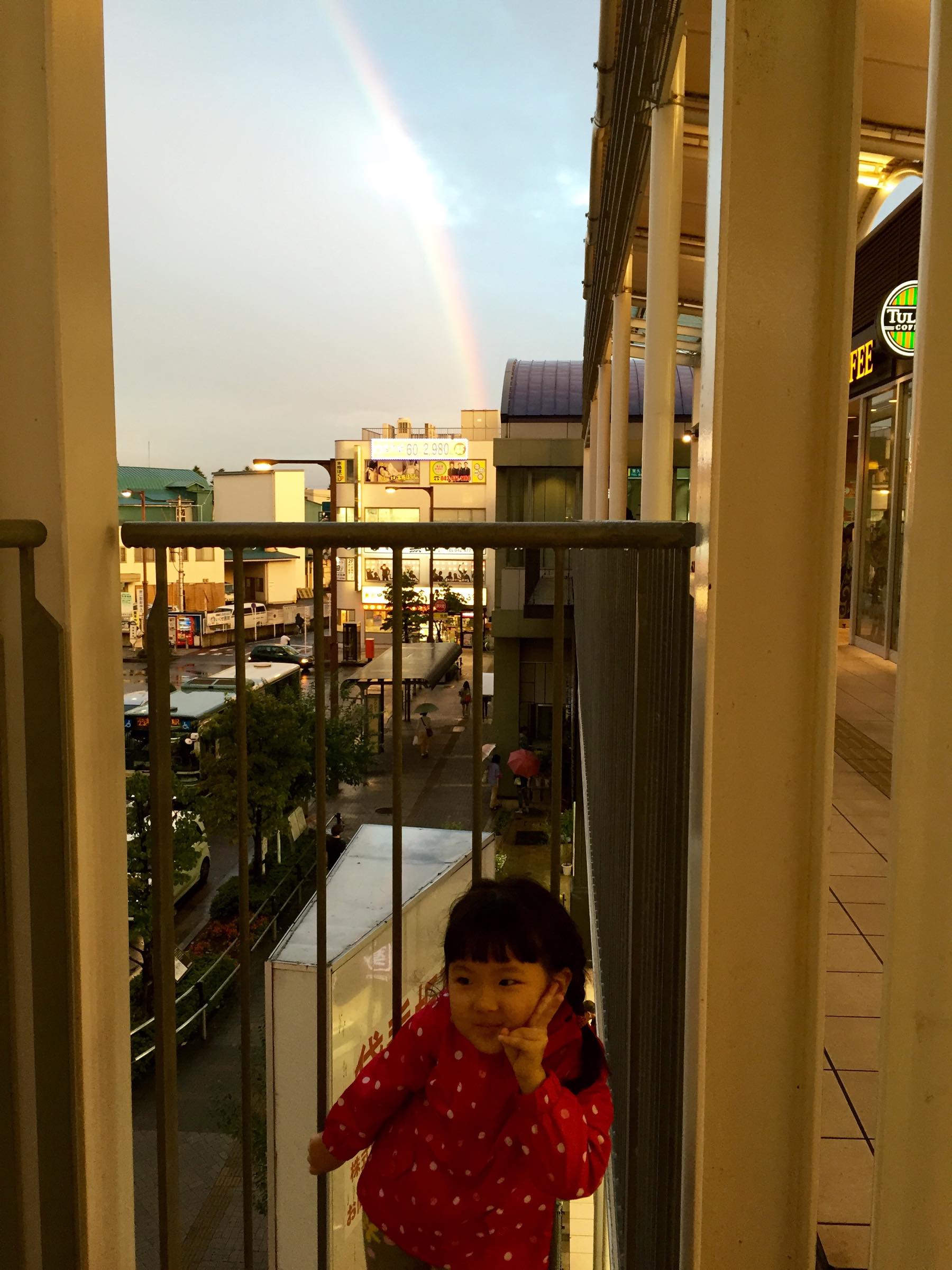 2日連続、空に虹がかかっていました。きのうの帰りは見れなくて半べそをかいていたこのちゃん。