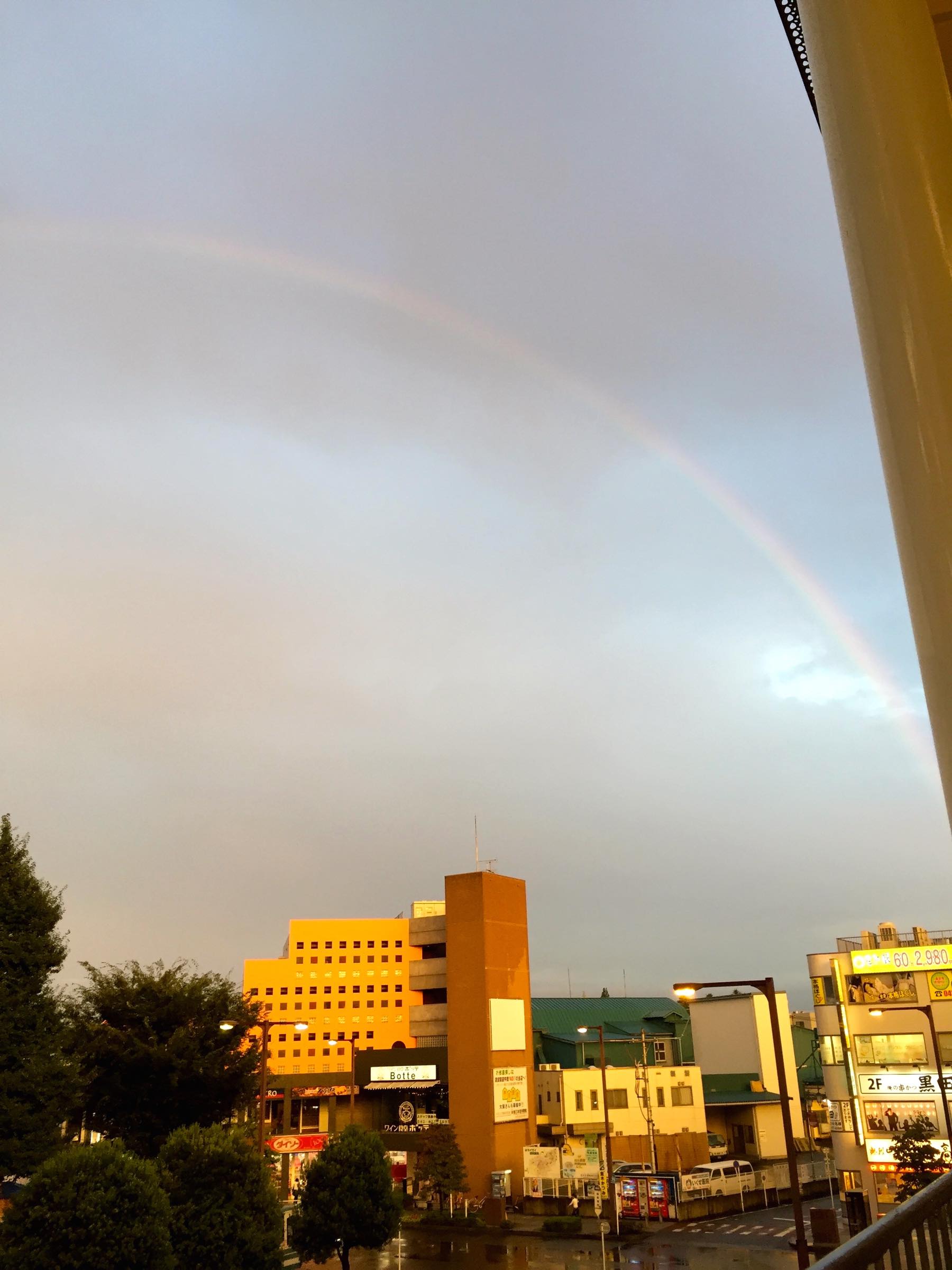 きょうは急いで帰りの支度をして外に出てきたらまだ空に虹があって何とか見ることができました。