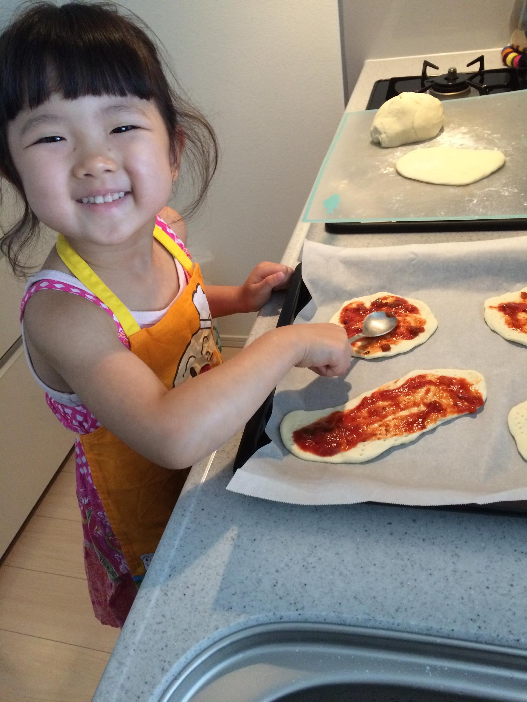 きょうは朝からピザを作りました。