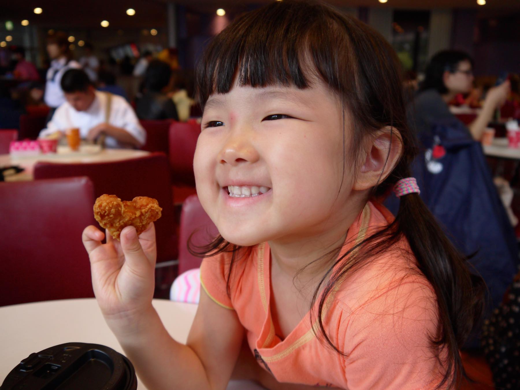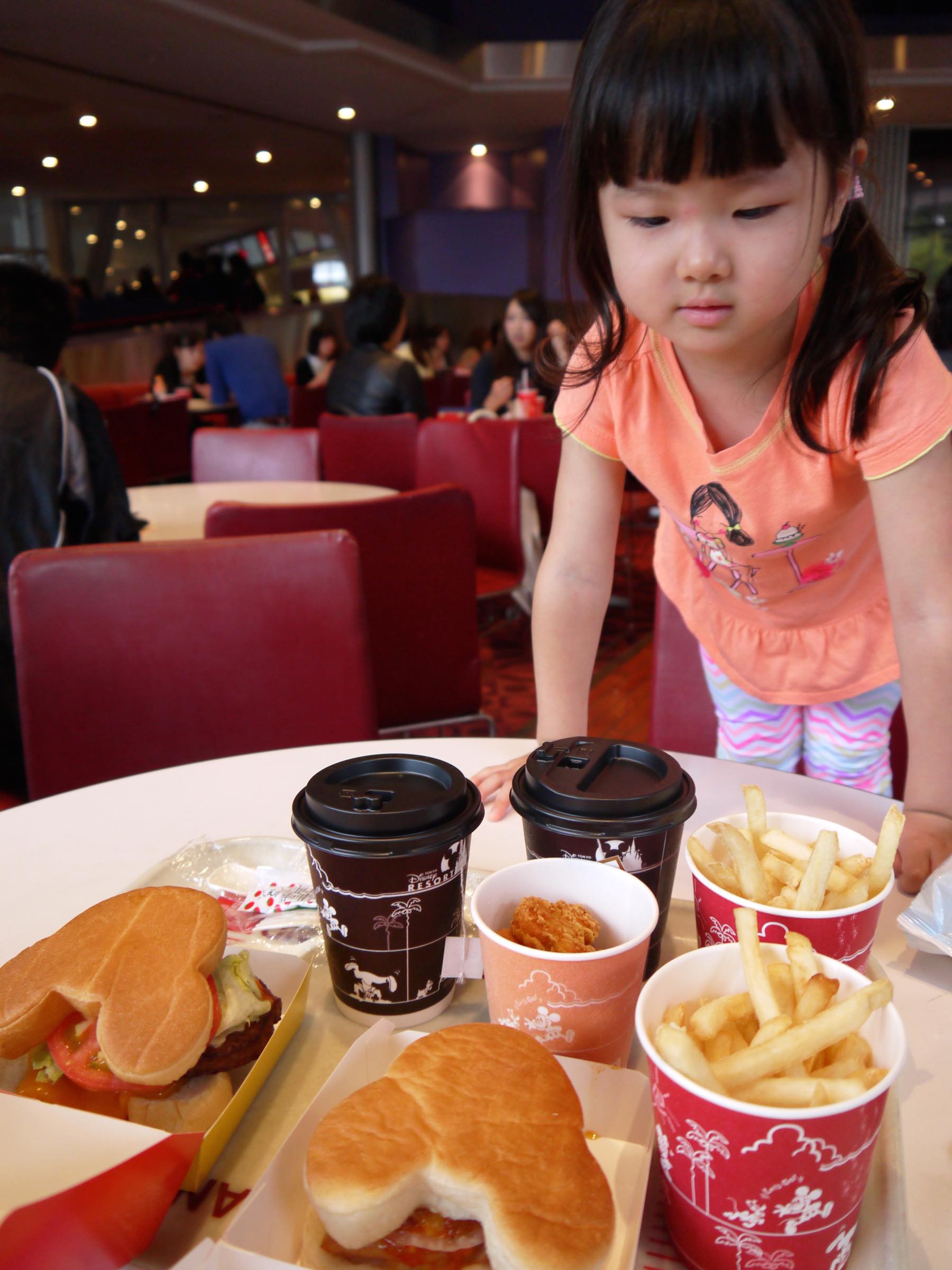 お昼は早めにレストランに入って食べました。ミッキーのハンバーガーにナゲット。寒いので暖かい紅茶を頼みました。まだ9月なのに残暑どころか雨で寒くて半袖では外はとても歩けません...