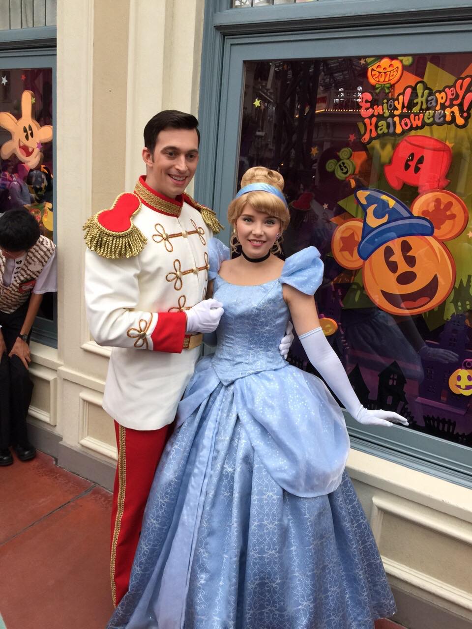 昼食後、このちゃんは寝てしまったのでその間にお土産探しにワールドバザールを歩くことにしました。買い物をしていると、シンデレラの魔法使いのおばあさんに会いました。しばらくするとシンデレラと王子様にも会うことができました。大人でもなかなかテンションが上がります。シンデレラのときはさすがに寝ていたこのちゃんを起こしました。