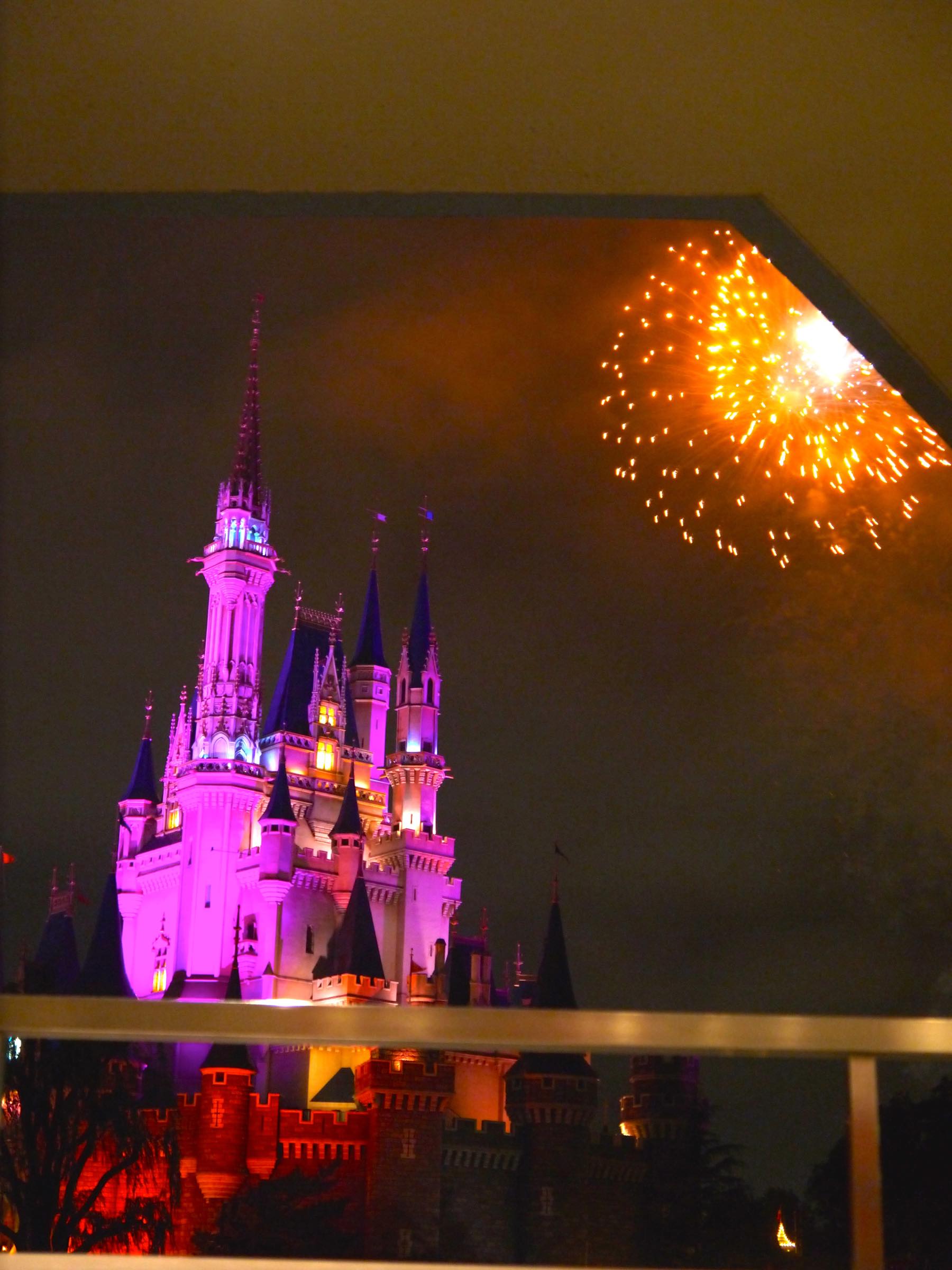 夜、楽しみにしていたエレクトリカルパレードは雨の日用の短いものでしたが、プロジェクションマッピングは予定どおり行われたので楽しむことができました。ただ、雨が降っていたのでレストランのテラス席から鑑賞したため、シンデレラ城の斜めに座っておりところどころ観にくかったので次回は正面からぜひ観てみたいです。
