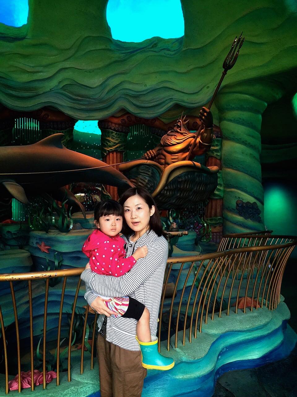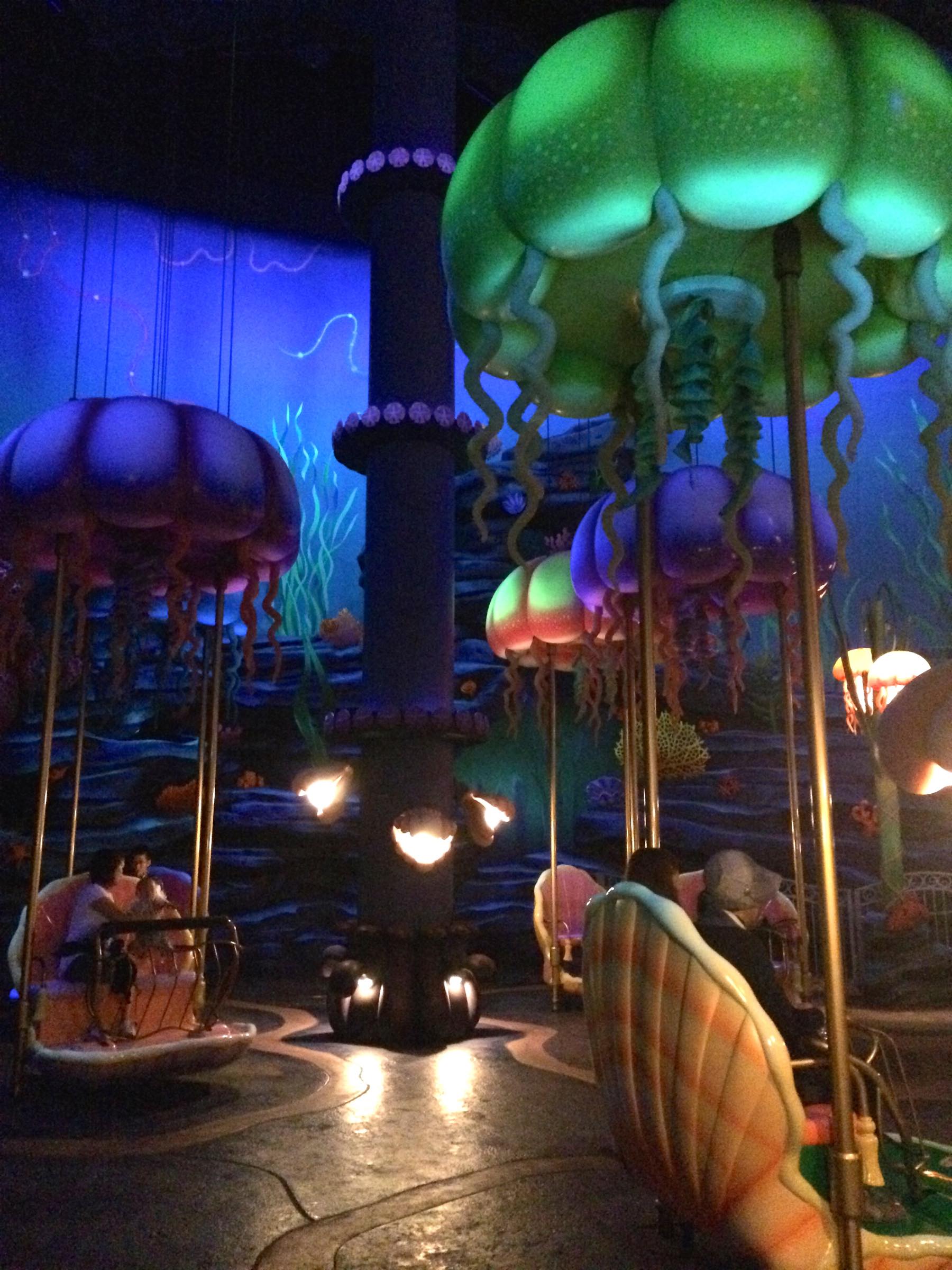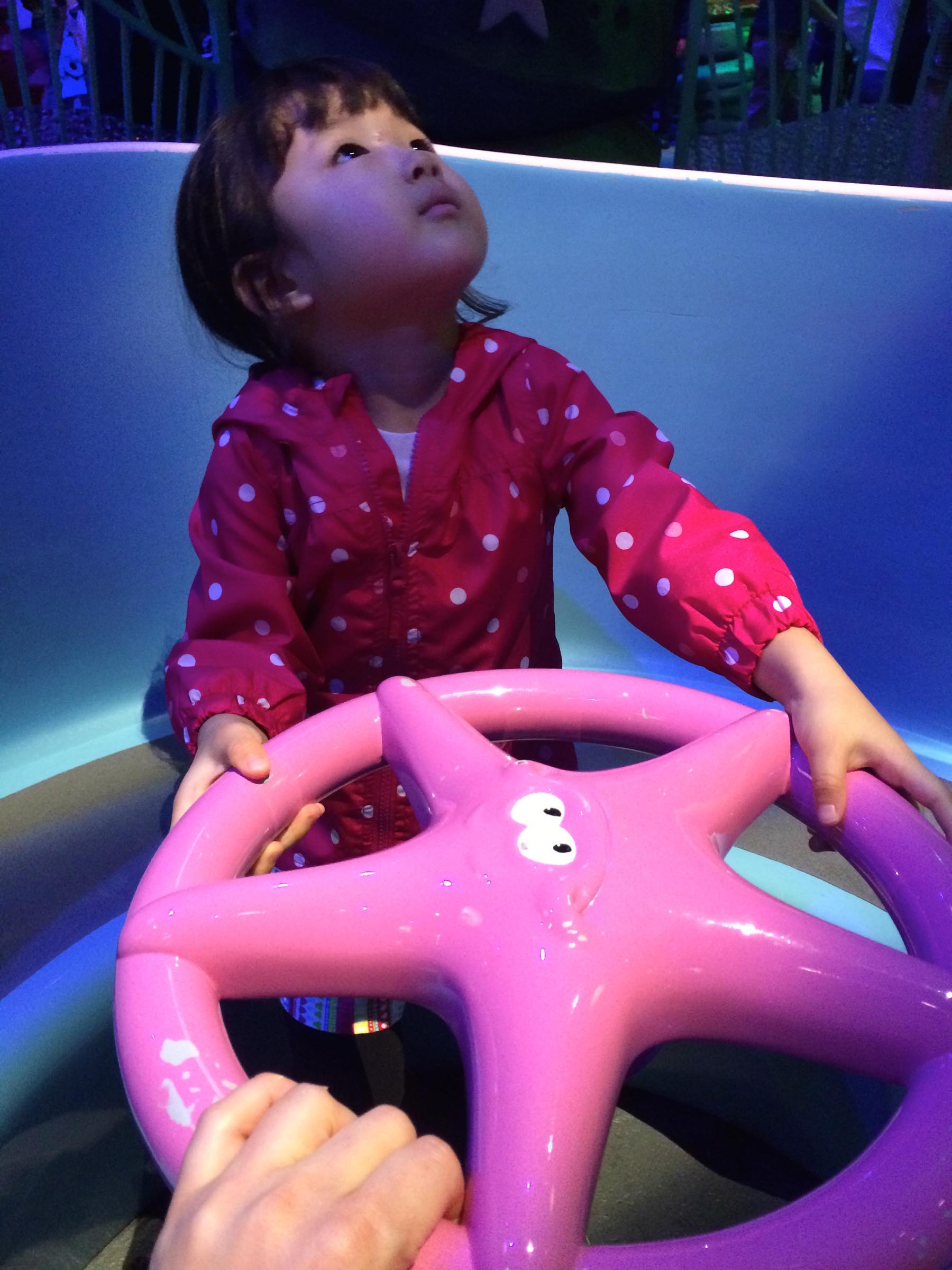 マーメイドラグーンは3歳児でも乗ることができるアトラクションがたくさんあるので、このちゃんは目に付いたものから順番に乗って行きました。クラゲが上下に動くやつ。