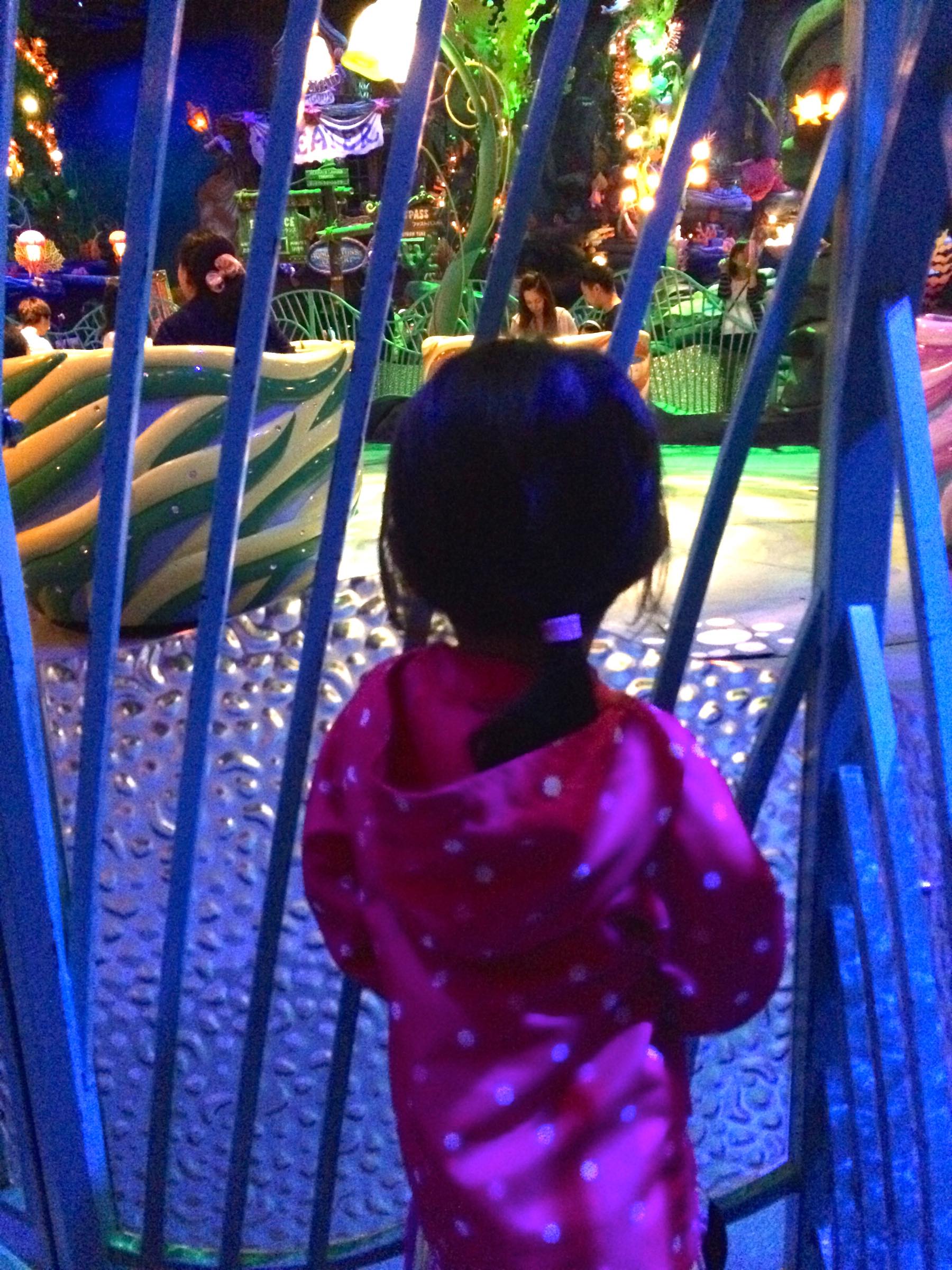 2日目はディズニーシーに行きました。15分前に入園できるチケットを利用してトイストーリーマニアのファストパスを取りました!朝からすごい人、人、人。アトラクションの時間まで1時間ほどあったのでマーメイドラグーンでアリエルのショーを観ました。