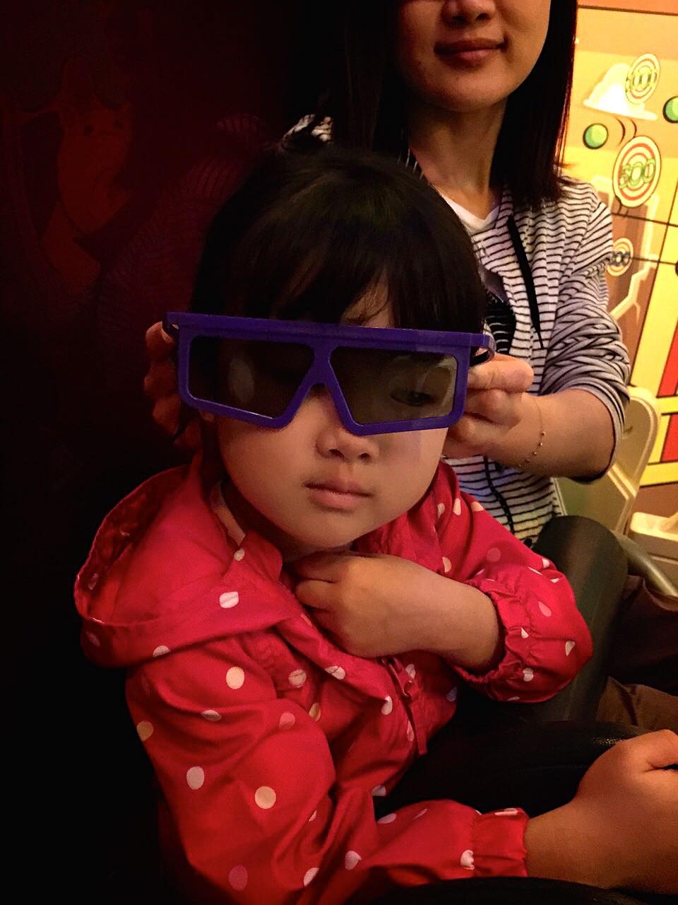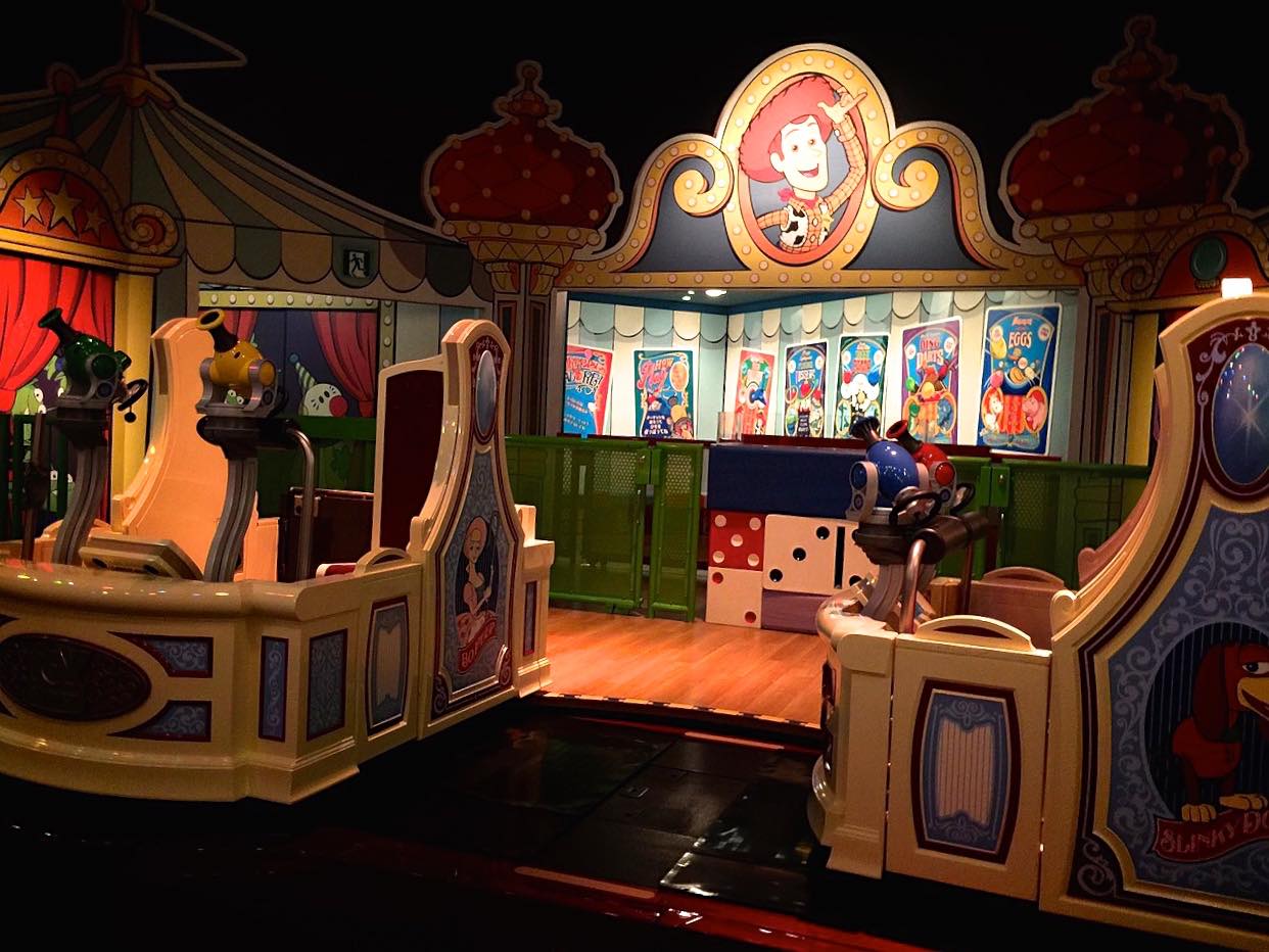 いろいろ乗りすぎてあっという間にトイストーリーマニアの時間になりました。園内は広くて思ったより移動に時間がかかるので、シーの入り口の近くまで急いで戻って何とか間に合いましたメガネをかけて的をねらって打ちまくり〜これは人気のわけがわかりました。何度乗ってもおもしろいかも!