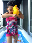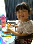 夕方、お友達と近所のお祭りに行ってきました。ヨーヨーとスーパーボウルすくいをやってからベンチに座ってひと休憩、持ってきた一口アンパンとお菓子を食べながら遠目にクルメイザーのショーを観ました。