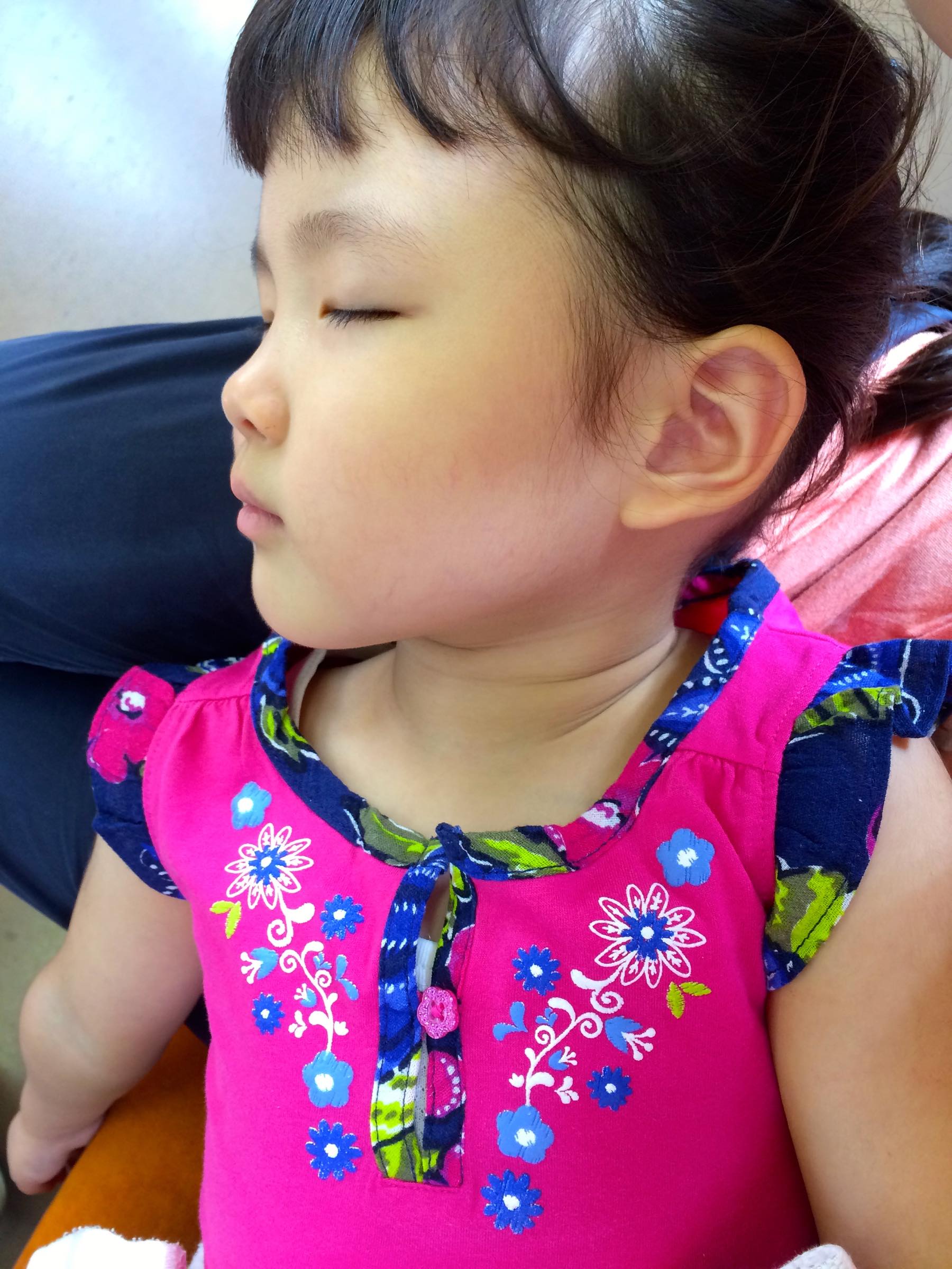 帰りはゆっくり普通列車で帰宅しました。遊び疲れたこのちゃんはお昼寝中...近場で楽しく遊べる場所でした〜また来よう♪