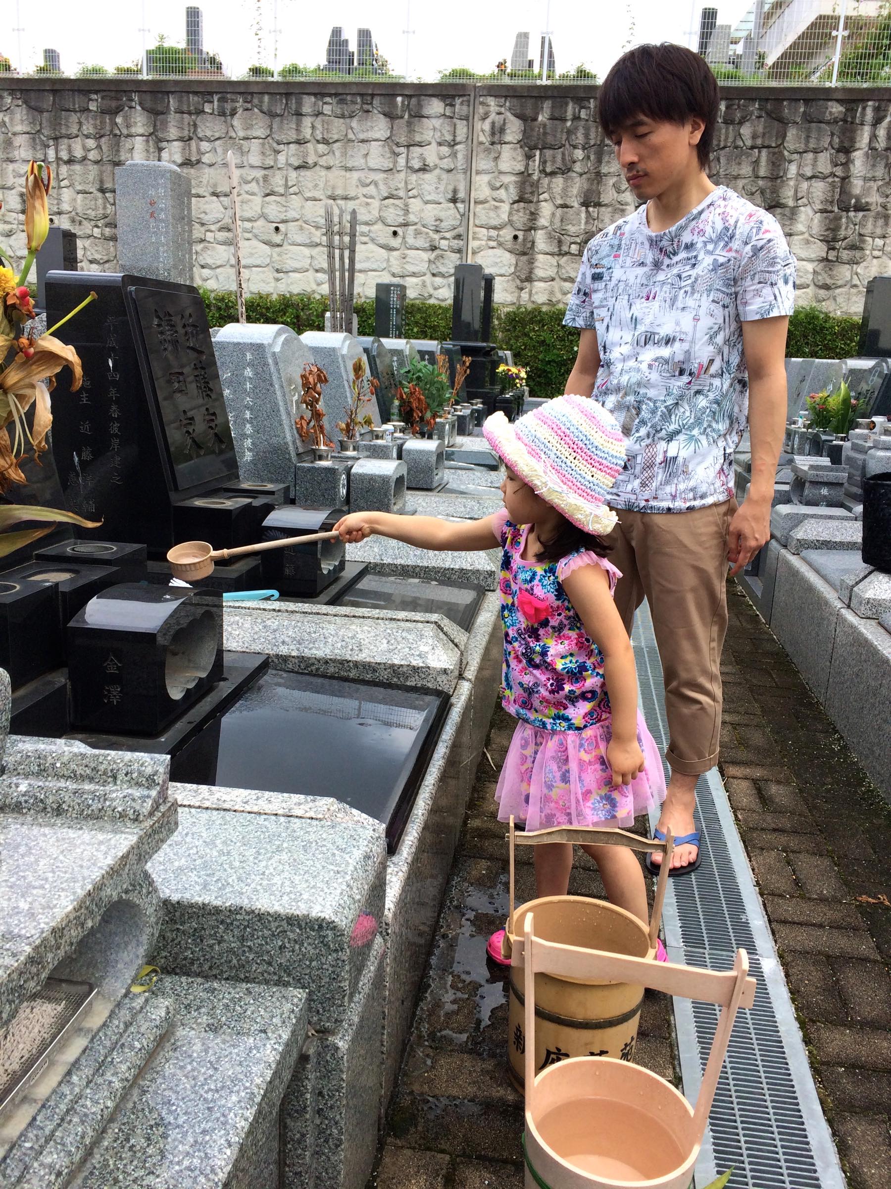 今日はおじいちゃんのお墓参りに行ってきました。墓石のお掃除のとき水をまきたがるこのちゃん。どうやら水遊びできると思ったようで...暑い日だったから気持ちはわかるけど...お掃除するんだよ、と教えてみんなで汚れを落としてきれいにしました。