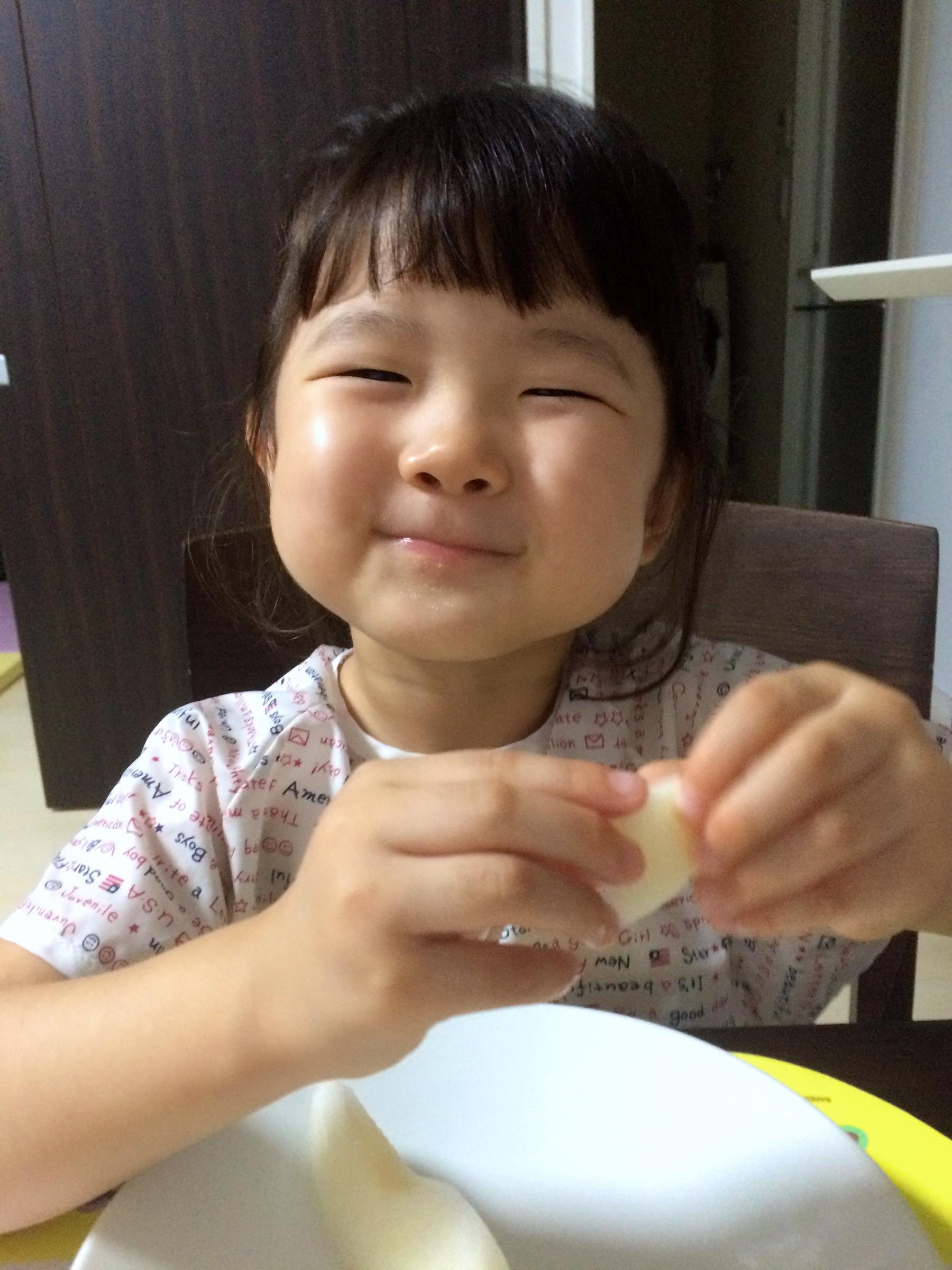 いつもはすすめても絶対食べないのに今日はパクパク食べていました。暑い日だったし冷たいものが美味しく感じたのかな。