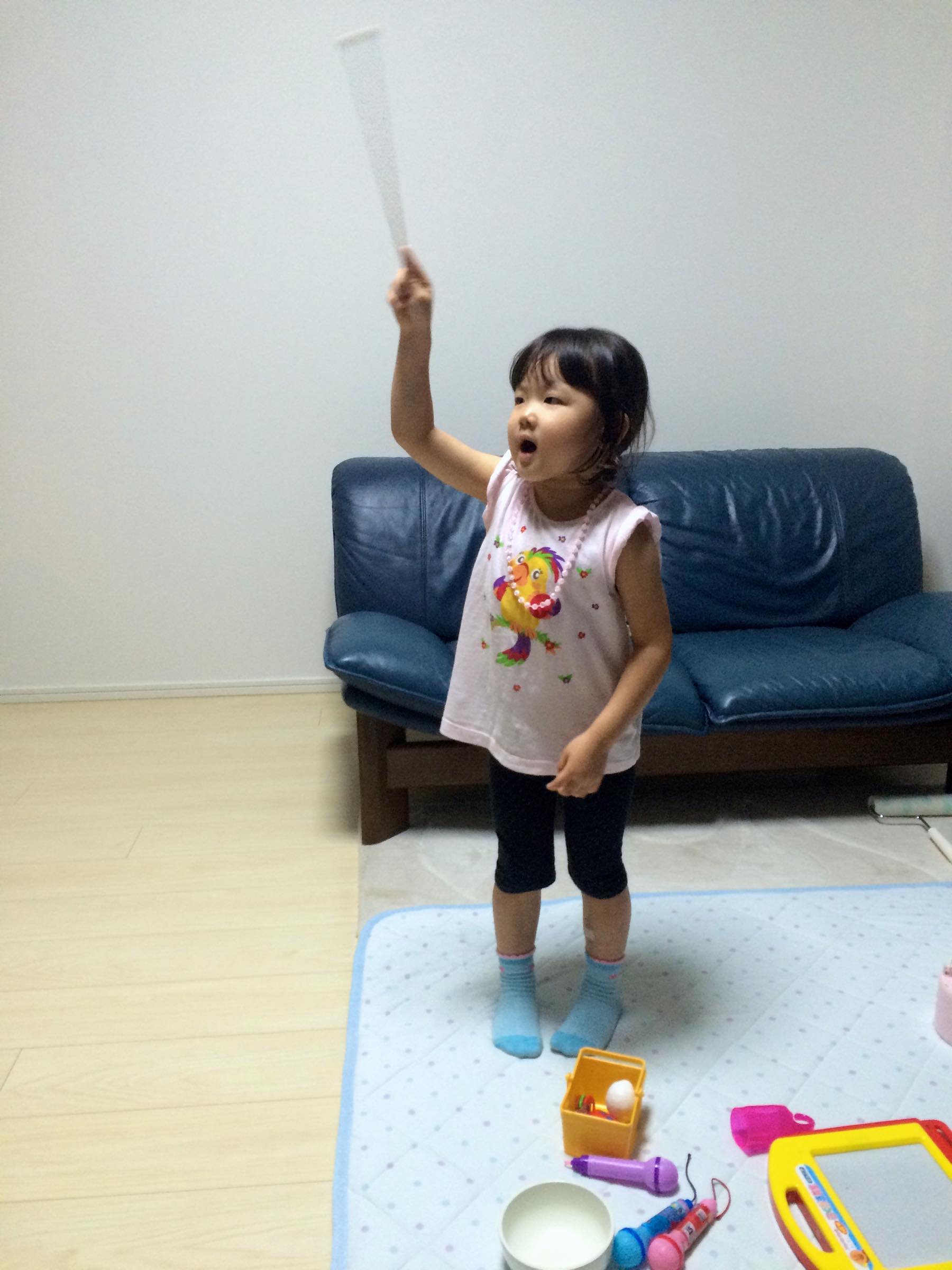 食後は木琴のスティックを振りながら、シンデレラの魔法使いの歌を「ビビバービーデブー♪」と得意げに歌ってくれました。「ビビバビーデブー」が言えないところがまた聴いてて笑ってしまうところなのです。