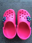 ベランダ用のサンダルにお花のチャームを買ってきてつけてみました。本人もとっても気に入っているようです。