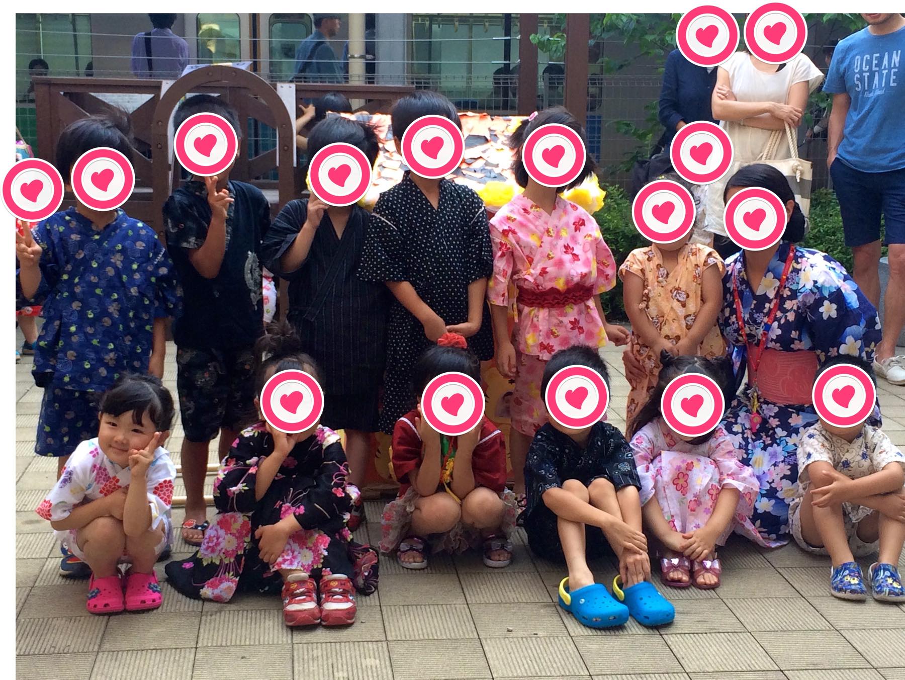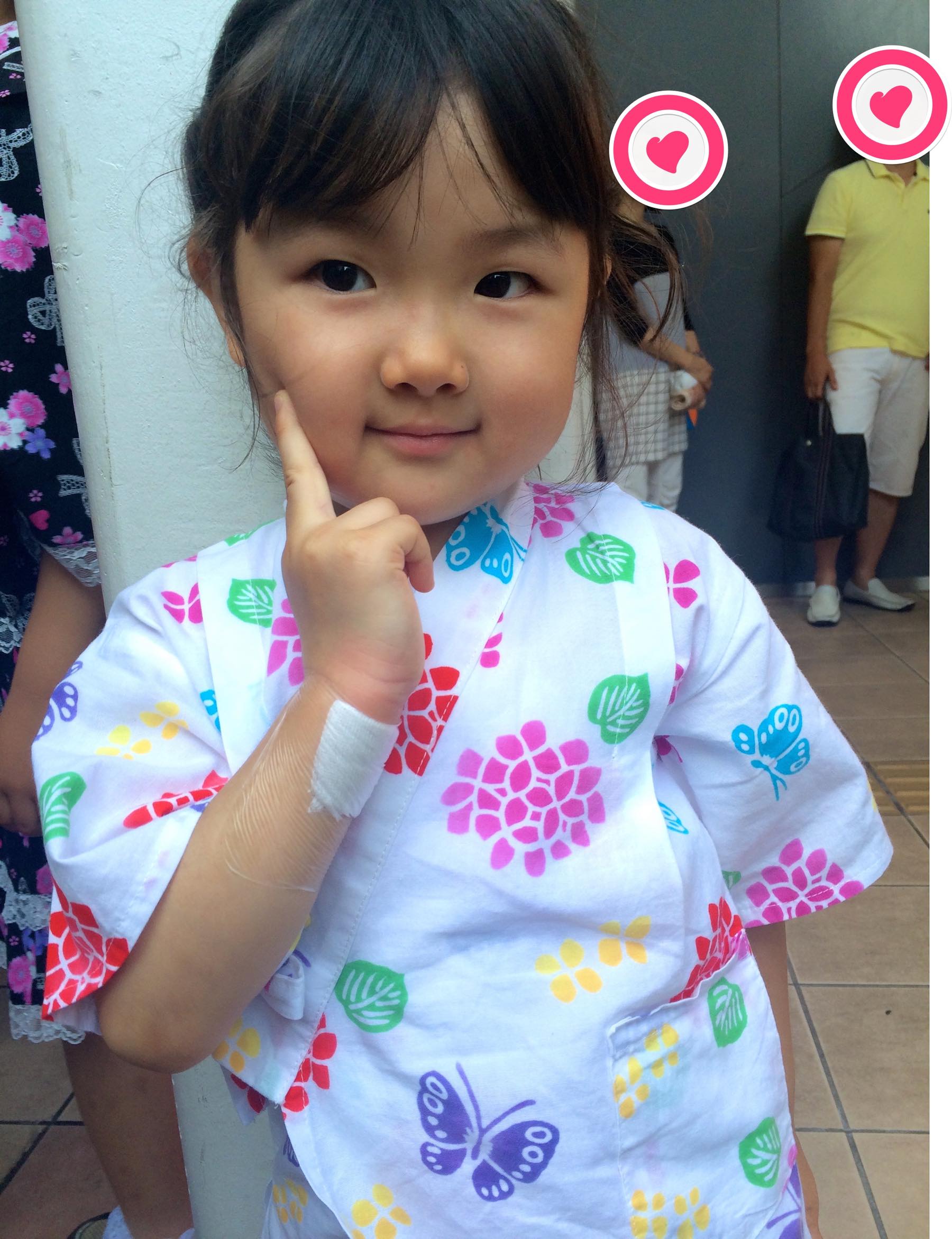 浴衣と迷ったけれど、まだ着られるのと動きが活発すぎて着崩れるのを心配して甚平で参加しました。来年こそ、浴衣かな。