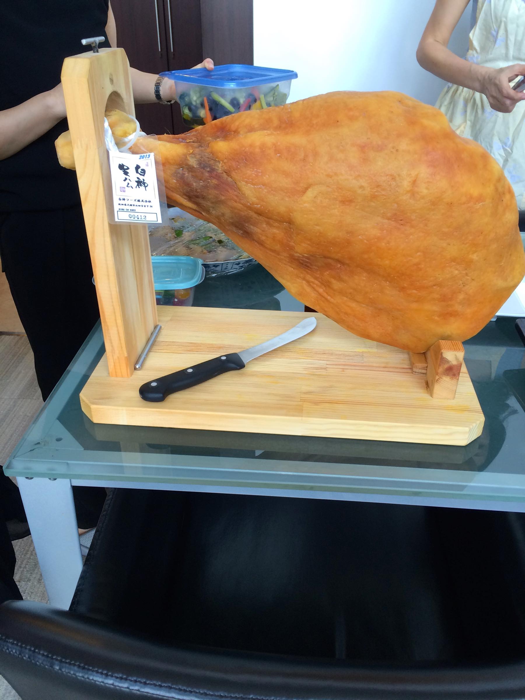 今回のメインは ”生ハムの一本買い” 購入した本人はキャリーケースに生ハムを入れて運んできていました。すご〜い豪華!!自分で好きなように切って食べてそれはそれは贅沢でした。